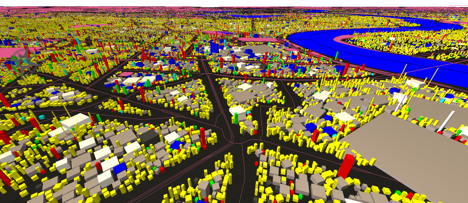 M-3D est une interface graphique qui permet notamment aux décideurs et au grand public une visualisation spatiale 3D des résultats produits par MUST-B (forme urbaine, localisation des ménages et des emplois, flux des déplacements, …) et M-CLIMATE (énergie consommée, polluants émis, dépenses des ménages, inégalités territoriales/sociales, ...).