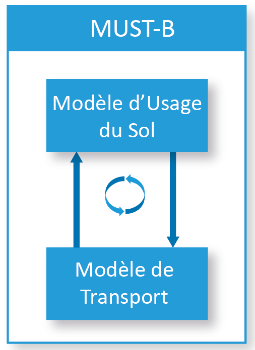 Le modèle MUST-B est systémique car il est fondé sur plusieurs boucles interactives : MUS/MT, Affectation/Choix modal, Localisation Ménages/Emplois, Occupation du foncier potentiel constructible par les ménages et les entreprises.