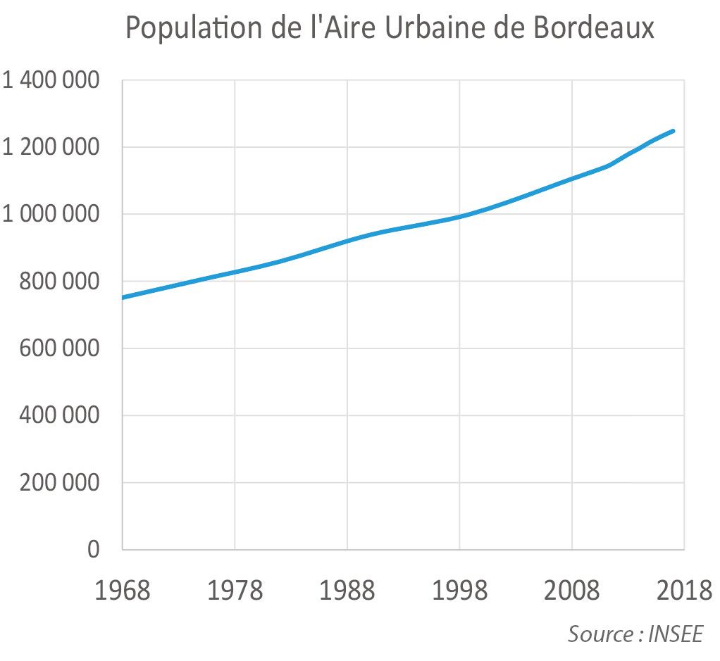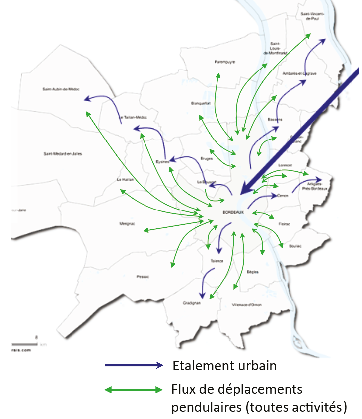 On observe un fort mécanisme d'étalement urbain dans l'Aire Urbaine de Bordeaux.