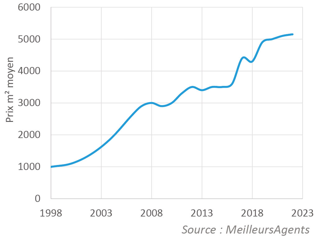 Augmentation du prix de l'immobilier de 7.5% par an. En 25 ans, le prix de l'immobilier moyen a quintuplé.